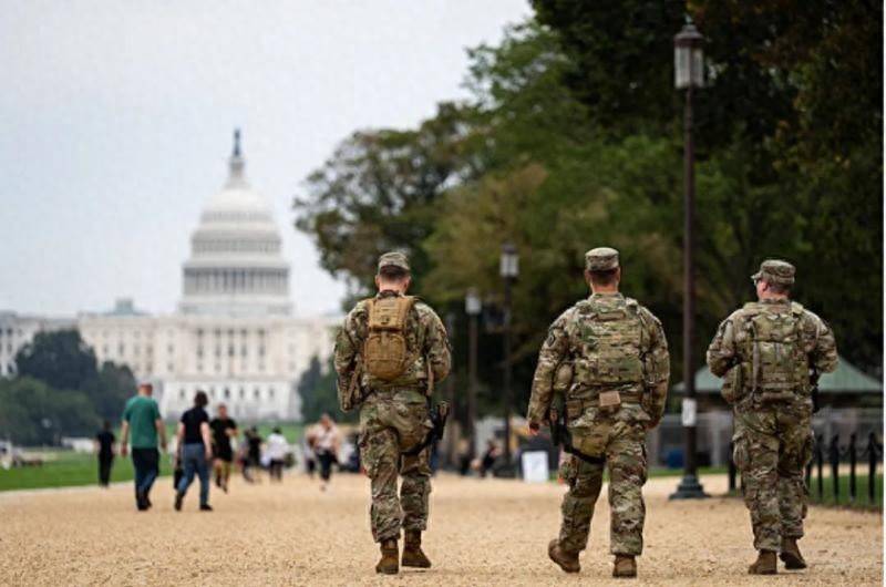 当地时间9月29日 在美国华盛顿国民警卫队成员在美国国会大厦附近巡逻