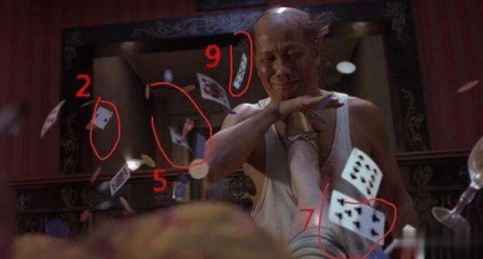 《功夫》中也曾出现9527,仅仅几秒时间,要是不仔细观察压根就发现不了。当时包租婆和包租公一起对打斧头帮,一闪而过了几张扑克牌,那几张牌上显示的数字分别是9527。
